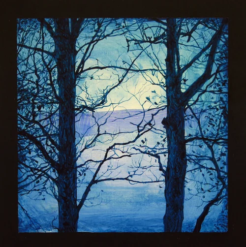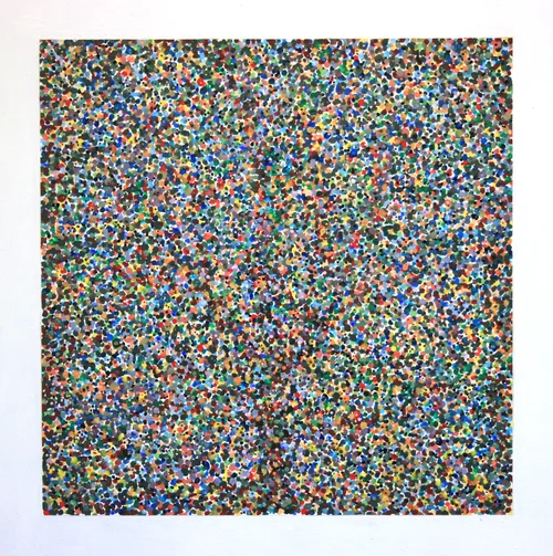 I’m somewhat strident in my conviction that if you give a viewer enough clues, they will discern a meaning on their own, and if not, then it’s not for them and time to move on. There’s a point in the life cycle of a work of art, where the original intent and/or system goes its own way, despite “the plan.” That point was reached for me only when I stopped painting. Along the way, there were the inevitably conscious decisions to create compositional balance, order, and clarity in the work, as I would with any other. But the system I devised had a life cycle of its own, without the usual cadence of beginning, middle, and end. Now that I’ve finished, I’m in the same place as a viewer-left to fend for myself in the woods, a place both beautiful and fraught with ambiguity.